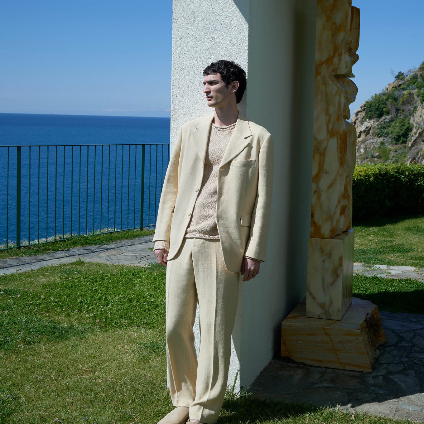 Le vestiaire masculin prolonge cette même idée de décontraction maîtrisée. Les chemises en lin apportent fraîcheur et naturalité, les chemises imprimées insufflent une énergie plus expressive, tandis que les ensembles en crochet revisitent les codes du vestiaire d’été avec modernité et subtilité.